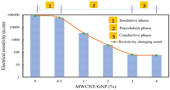 Impact of MWCNT/GNP concentration on electrical resistivity.