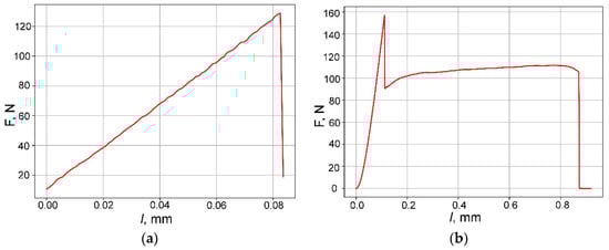 A comparison of the fracture curves of samples of pure SiC ceramics and a layered composite material based on it is presented in Figure 7.