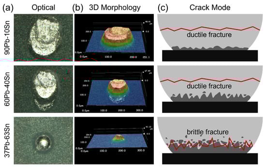 - Lee, H.-T.; Chen, M.-H.; Jao, H.-M.; Liao, T.-L. Influence of Interfacial Intermetallic Compound on Fracture Behavior of Solder Joints. Mater. Sci. Eng. A 2003, 358, 134–141. [Google Scholar] [CrossRef]