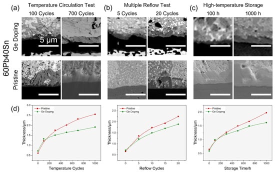 Qu, Z.; Hao, Y.; Chen, C.; Wang, Y.; Xu, S.; Shi, S.; Lin, P.; Xie, X. Improvement of PbSn Solder Reliability with Ge Microalloying-Induced Optimization of Intermetallic Compounds Growth. Materials 2024, 17, 724. https://doi.org/10.3390/ma17030724