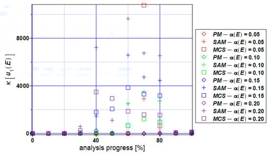 - Strąkowski, M.; Kamiński, M. Stochastic Finite Element Method elasto-plastic analysis of the necking bar with material microdefects. ASCE-ASME J. Risk Uncertain. Eng. Syst. Part B Mech. Eng. 2019, 5, 030908. [Google Scholar] [CrossRef]