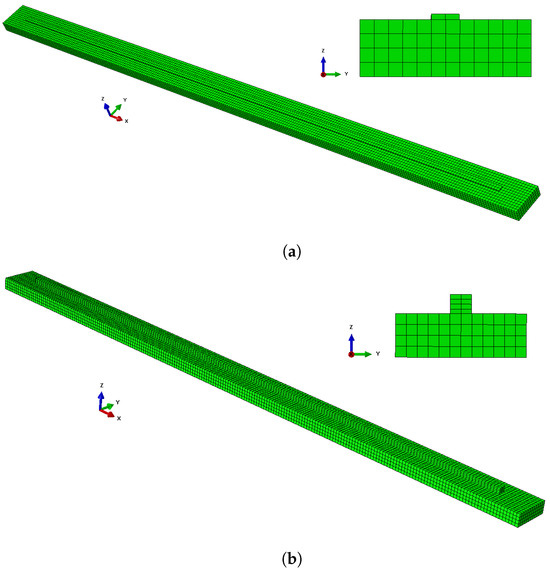A visualization of two of the FE models: (a) a one-layer model, and (b) a four-layer model.