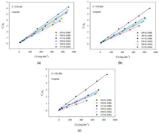 | C-CD (6 h) | Langmuir | qe exp (mg g−1) | 232 | 207 | 186 |