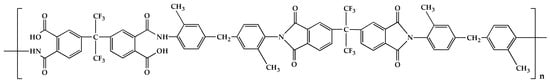 The cobalt(II) chloride hexahydrate and N,N-dimethylacetamide (DMAc) were purchased from Sigma-Aldrich (St. Louis, MO, USA) and used as received. The 2,2′-bis(3,4-dicarboxylphenyl)hexafluoropropane dianhydride (6FDA) was acquired from the former Hoechst Celanese (Summit, NJ, USA) and purified via recrystallization from acetic acid anhydride. The diamine used in this study, 3,3′-dimethyl-4,4′-diaminodiphenylmethane (MMDA), was synthesized according to a reported method [34].