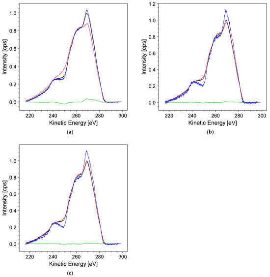 The Auger spectrum, being the self-convolution of the density of states (DOS), is described by Equation (1) for all (l, m) combinations. In the past, numerous studies [12,13,14] have highlighted the Auger spectra’s sensitivity to valence electronic and local structures.