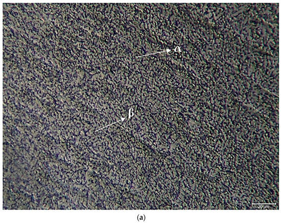 LOM images of nonoxidised Titanium Grade 5 and oxidised Titanium Grade 5 alloys are shown in Figure 3. While it is observed that the α grains with grey contrast colour in the microstructures are equiaxed, it is observed that β grains with black contrast colour are at the grain boundaries. However, it is possible to observe that in oxidised Titanium Grade 5, the α structure becomes larger, and the number and density of the structure increases. When you look carefully at the photographs regarding this structure, small-sized structures can be seen inside the growing α particles and on the β particles. These structures are predicted to be the Al-Ti/Al-V secondary phases visible in the XRD (Figure 2) analysis.
