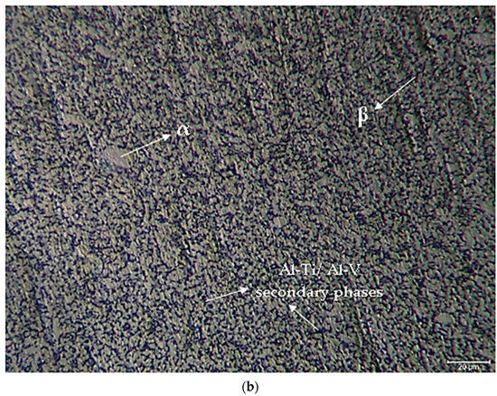 - While it is observed that the grey contrast coloured α grains are coaxial in the microstructures, it is seen that there are black contrast coloured β grains at the grain boundaries. However, in oxidised Titanium Grade 5, it is possible to observe that the α structure becomes larger, and the number and density of the structure increases. Small-sized structures can be seen inside the growing α particles and on the β particles. These structures are predicted to be Al-Ti/Al-V secondary phases.