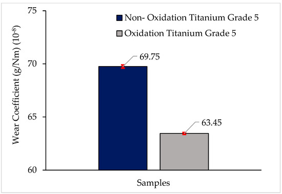 Wear coefficient results of nonoxidised and oxidised Titanium Grade 5 alloys.