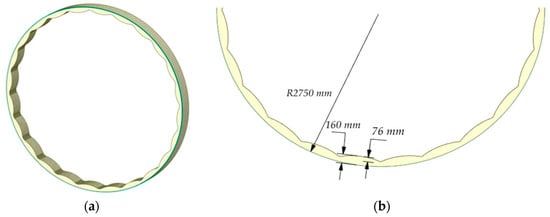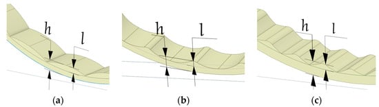 To obtain a sufficient amount of data for comparison, a series of simulations were carried out for several types of liner profiles parameters of initial liner profiles are presented in Figure 5, where h is the height of the entire liner profile, l is the height of the wave. For all three types of linings, h = 160 mm, l = 76 mm.