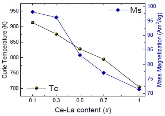 - Li, Z.; Liu, W.; Zha, S.; Li, Y.; Wang, Y.; Zhang, D.; Yue, M.; Zhang, J. Effects of lanthanum substitution on microstructures and intrinsic magnetic properties of Nd-Fe-B alloy. J. Rare Earths 2015, 33, 961–964. [Google Scholar] [CrossRef]