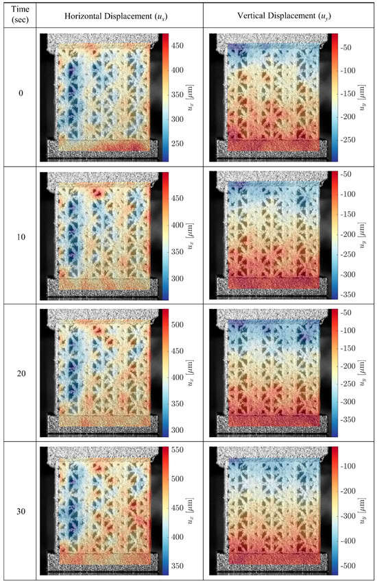 DIC processing snapshots for horizontal and vertical displacements in a 30-s interval (X-direction type S sample shown). Reproduced with permission from Solid Freeform Fabrication (SFF) Symposium, 2023, [51].