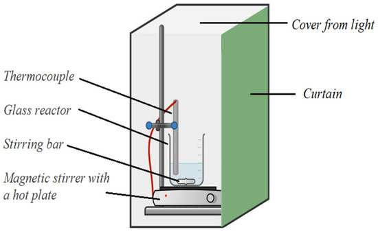 The experiments of chalcopyrite leaching were conducted in a stationary glass reactor (600 mL capacity) with a cover, thermostated and equipped with a magnetic stirrer. The scheme of this experimental arrangement is shown in Figure 2. The entire system was shielded from external light to ensure that the kinetics would not be influenced by the semiconductive nature of chalcopyrite [13].