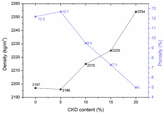 - As the amount of CKD increased, the porosity of the HPC decreased and the bulk density increased. Porosity reached a minimum value of 5% when the concentration of CKD was 20%.