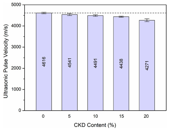 - The ultrasonic pulse velocity decreased as the concentration of CKD increased. This was caused by a reduction in the homogeneity of the HPC matrix. The largest decrease of 7.5% occurred when the concentration of CKD was 20%.