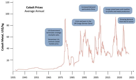 Average annual cobalt prices for the last 80 years.