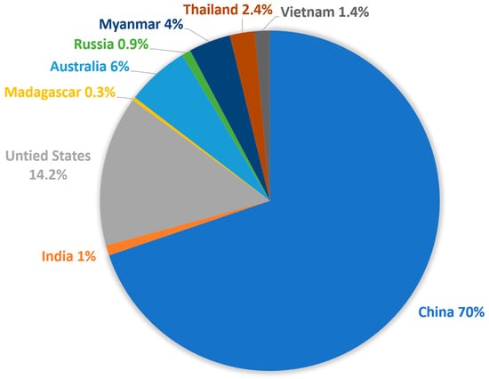 Rare earth metal production by country in 2022 [26].