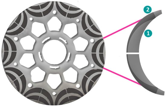 - Dubus, J.-M. Magnetic Flux Density Distribution in the Rotor/Stator Simulation and Demagnetisation Field Simulated on a Magnet from Rotor; Internal document; Valeo: Paris, France, 2018. [Google Scholar]