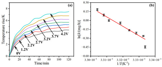 The fitting result in Figure 4b showed that Ea = 346.37 kJ/mol.