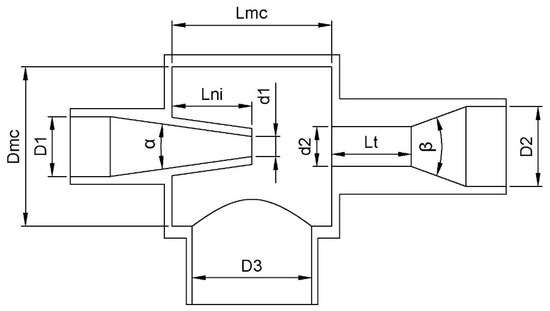 From analyzing these results, it can be seen that, by aiming for the lowest possible pressure drop, the Venturi convergence and divergence angles (α and β) are within the ranges of the standard for the manufacture of classic Venturi injectors. Therefore, they can be considered valid.