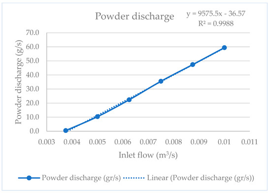 Furthermore, from the statistical study, it can be concluded that the variables that most significantly affect powder suction are D3, d1, and d2 (in that order), which makes it clear that d1 and d2 are important because they are the two variables on whose size the vacuum generated in the mixing chamber depends, and at equal pressure, the larger the suction diameter (D3), the more physical space there is for the particles to rise.