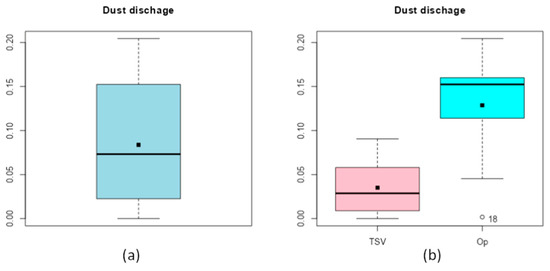The first thing to carry out is to group all the results together to see the dispersion of the results. Figure 13a shows that the results are not very dispersed. However, when the results of the randomly generated variations (TSV) are separated from the results of the optimizations (Op), it is clear that the optimizations tend to be upward (Figure 13b).