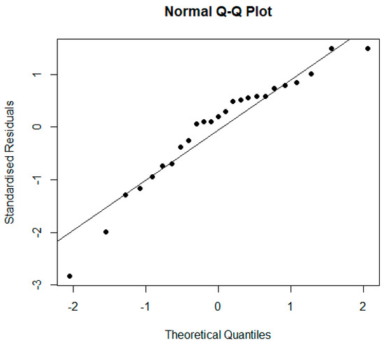 In the Q-Q plot (Figure 14), the points are quite close to the line, thus corroborating the normality of the residuals.
