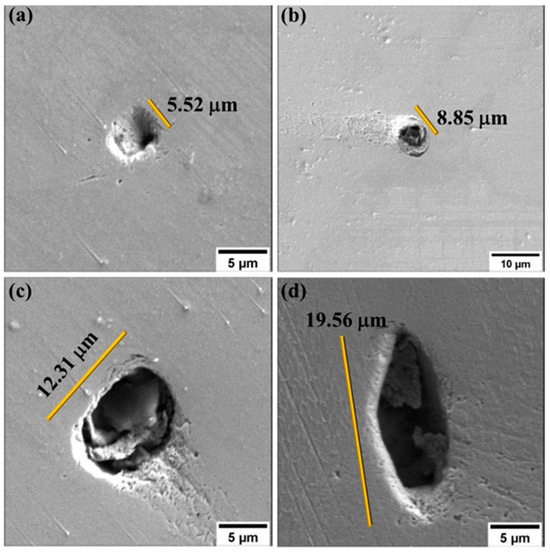 Furthermore, the high-stress concentration near the defects can lead to the nucleation and propagation of cracks that can ultimately lead to the failure of the material. Figure 14 shows the presence of microcracks nucleating from or close to the pores.