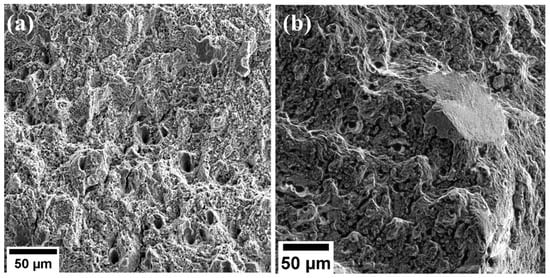 Figure 12 shows a higher magnification of the surfaces. Numerous dimples were observed on the surfaces, illustrating a ductile fracture mode.
