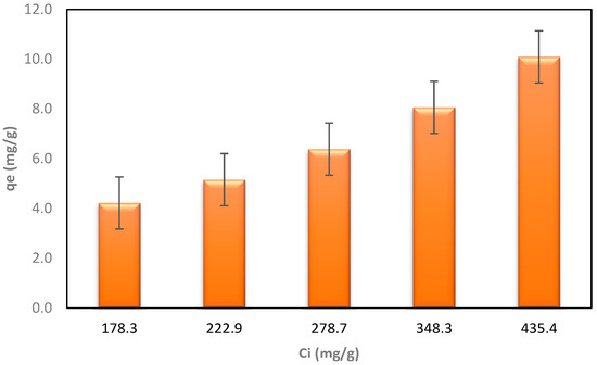 Table 4 shows the results of nitrogen adsorption using biochar derived from wheat straw for LLCH treatment. The correlation between the calculated qe and initial LLCH concentrations is illustrated in Figure 7.
