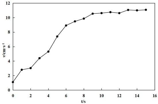 Maximum speed value versus time in 15s after startup of high-frequency power supply (the driving electrolytic solution is 30% H2SO4).