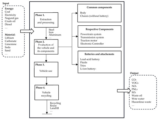 Scheme of vehicle life-cycle analysis. Own study based on [61,62].