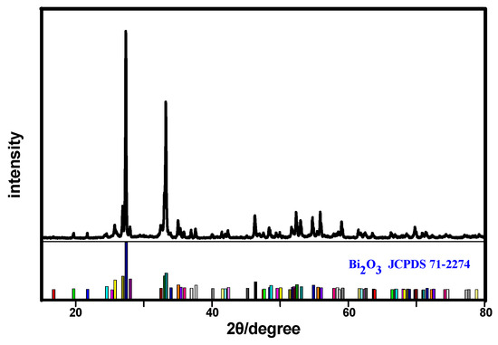 XRD pattern of the as-synthesized Bi2O3 microrods.