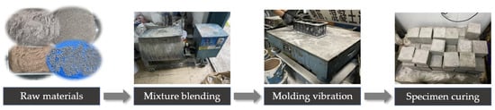 The concrete specimen preparation flow, based on the dry-mixing method.