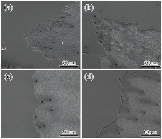 The crack propagation path of steel with different Mn content of samples at 2Mn (a), 3Mn (b), 4Mn (c), and 5Mn (d).