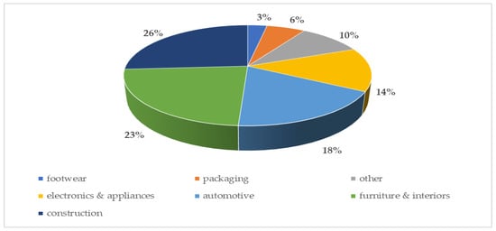 Nowadays, polyurethanes are used in almost all aspects of daily life, changing the quality of people’s lives. Cushion materials, furniture, automotive, bedding, seating cars, shoe soles, medical devices, wood substitutes, electronics, and packaging, are only a few common examples of polyurethane used in everyday life (Figure 2) [8,9].