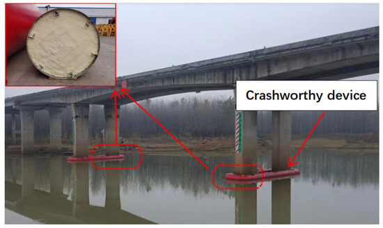 The navigation challenges between ships and bridges in the water constitute a natural contradiction. Ship impacts threaten the structural stability of bridges, and transient impacts have significant potential to cause structural damage to bridges [1]. Several studies have investigated the installation of crashworthy devices around bridge piers [2,3,4,5], which are intended to absorb energy and increase the structural safety of bridges.