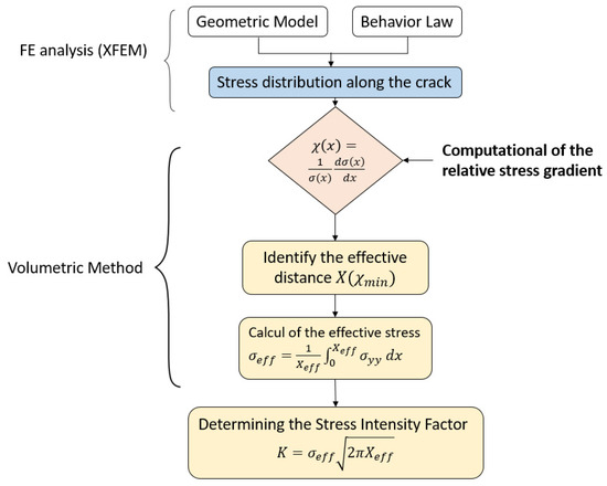 Steps to compute the stress intensity factor by coupling the X-FEM and volumetric method.
