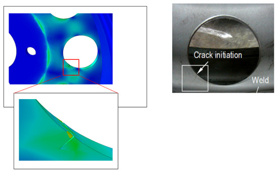 In mechanical design, in order to properly design a structure, it is indispensable to take into account the phenomenon of cracking [2]. This subject has a major importance to researchers in this field, and a great deal of research is currently underway to find an effective way to predict crack behavior [3,4,5,6]. Figure 1 represents an example of crack growth near the hole of the wheel rim.