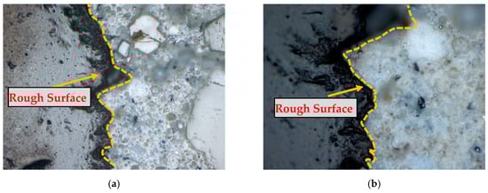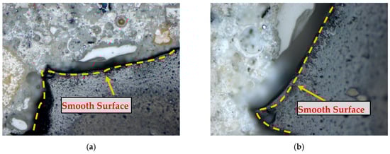 Microscopic analysis of pre-treated CR in concrete. (a) Example 1; (b) Example 2.