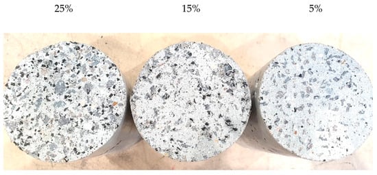 Different rubber content in cylinder specimens.