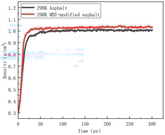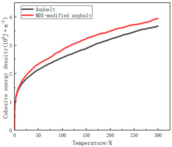 - Utilizing Materials Studio software, an MDI-modified asphalt model was simulated, and its fundamental properties, such as density, free volume, cohesive energy density, and glass transition temperature, were evaluated. The results indicate that the MDI-modified asphalt exhibits enhanced resistance to compression, durability, and cracking, and stability. These improvements contribute to enhanced curing performance, ultimately improving pavement stability and longevity, thereby reducing pavement damage.
