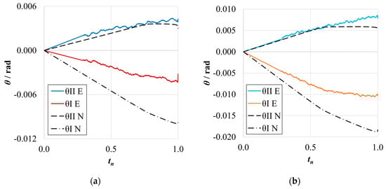 The θ-fixtures were glued in position with cyanoacrylate adhesive (Düsseldorf, Germany). The inclinometers connected to a data-acquisition system were positioned in the θ-supports and then connected to the specimen, as seen in Figure 5. For each test, the rotation values of each arm of the specimen were recorded, and the compliance ratios were calculated.