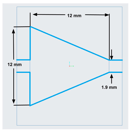 Dimensioned diagram of the nozzle-shaped connector used for result comparison.