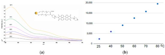 We also recorded fluorescence spectra for AuNPs functionalized with PZPR in MOPS buffer (1 mM, pH 5.35) at variable temperatures (Figure 8a).