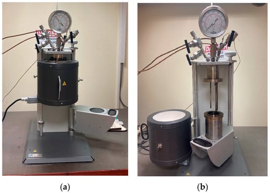 Non-stirred reactor (Parr Instrument Company) (a) in operation and (b) not in operation.