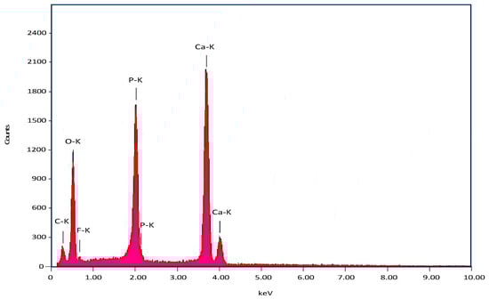 According to the EDX spectra (Figure 5), the main inorganic constituents for BFA consist of calcium and phosphorous. The average fluoride content was approximately 1.43 wt%. The ICP-MS (Table 2) analysis showed that trace elements such as Na, Mg, K, Zn and Sr were present. Furthermore, toxic elements including cadmium (Cd) and lead (Pb) were below the detectable limits set by the ASTM standard (F1185-03) [19].