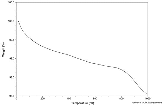 The BFA sample under TGA analysis in Figure 7 exhibited a total weight loss of 1.9% when heated to 1000 °C.
