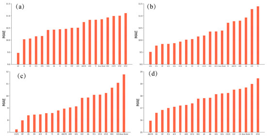 MAE of the trained models by machine learning with atomic parameters. (a) Ac1, (b) Ac3, (c) MS and (d) BS.