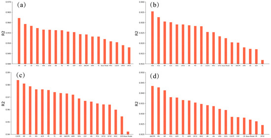 R2 of the trained models by machine learning with atomic parameters. (a) Ac1, (b) Ac3, (c) MS and (d) BS.