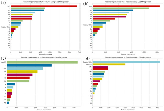 Feature importance analysis in the training process. (a) Ac1, (b) Ac3, (c) MS and (d) BS.
